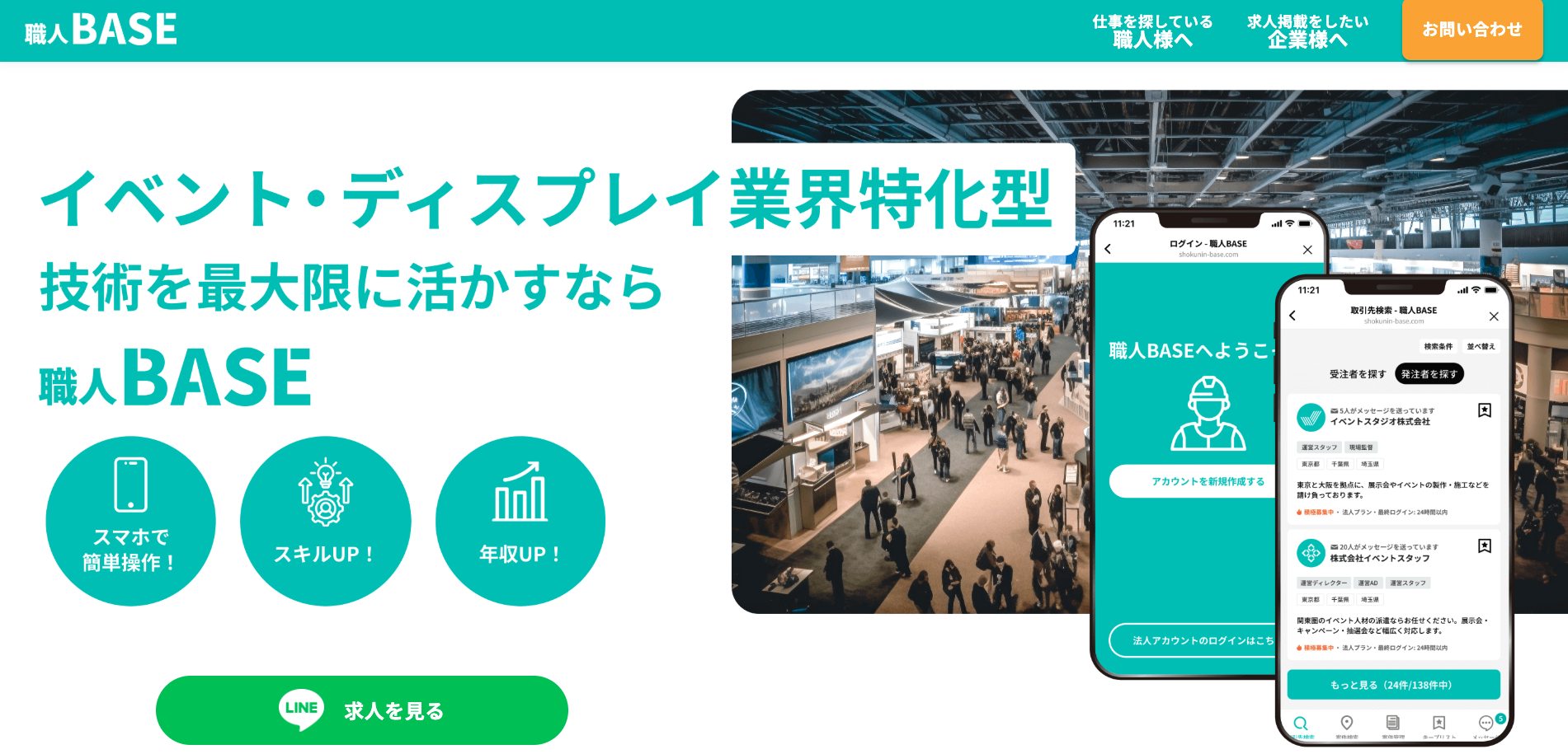 DTPオペレーターへの転職を検討している方は、イベント業界に特化した採用支援サービス「職人BASE」の活用がおすすめです。デザイン関係の求人も多数掲載されていて、年収アップやスキルアップにつながる求人を見つけられるサイトになります。