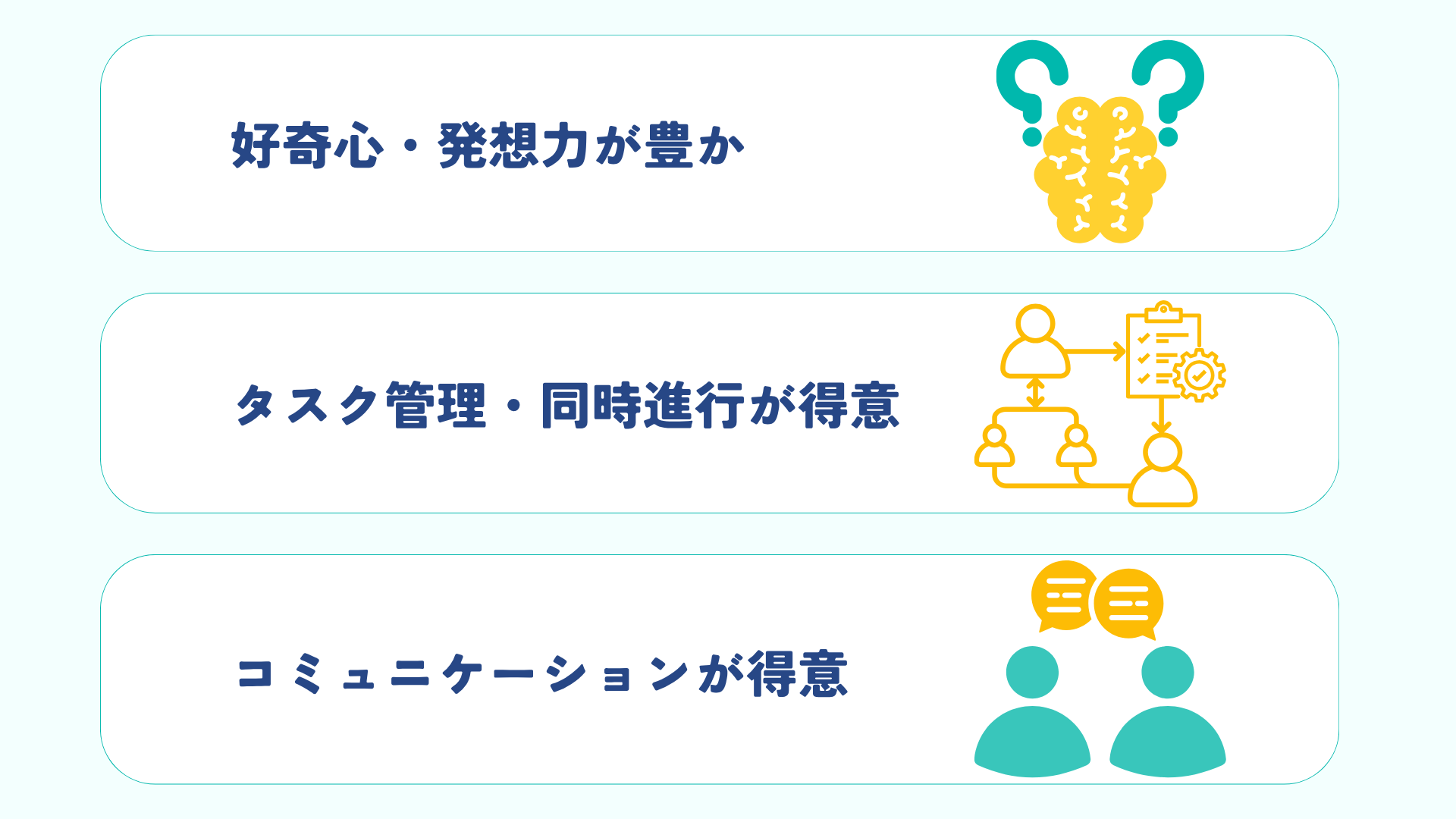 • 好奇心・発想力が豊かな人