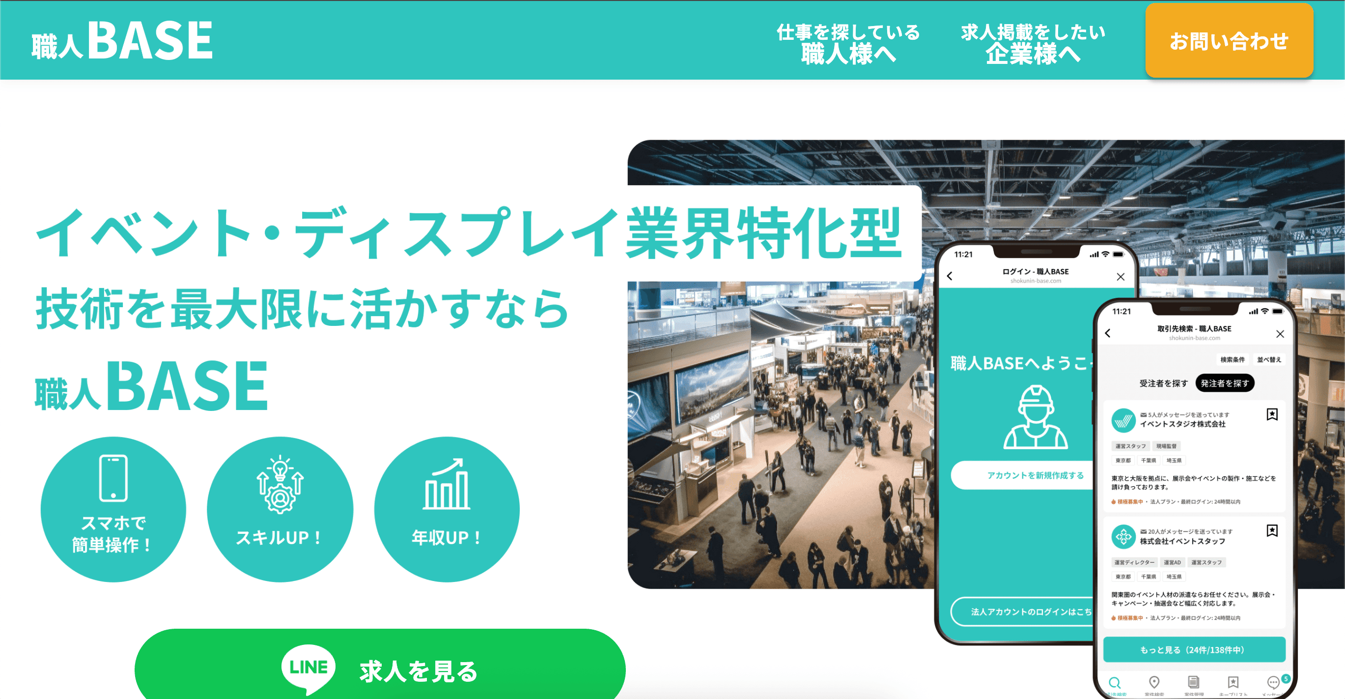 イベントプランナーとして転職や案件探しを進めるなら、職人BASEの利用がオススメです。イベント・展示会・舞台設営など、業界に特化した求人や業務委託案件が多く掲載されており、現場経験を活かせる仕事を効率よく見つけられます。